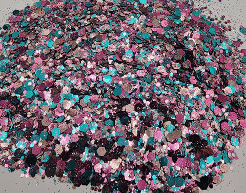 A custom pink glitter mix
