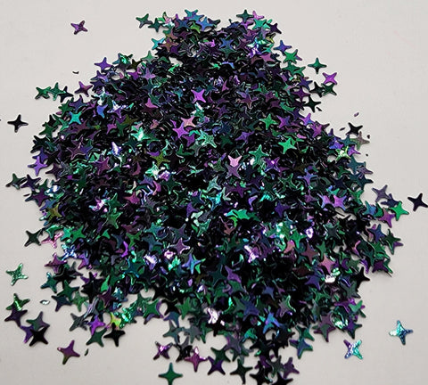 Black holographic 4 point star shaped glitter.